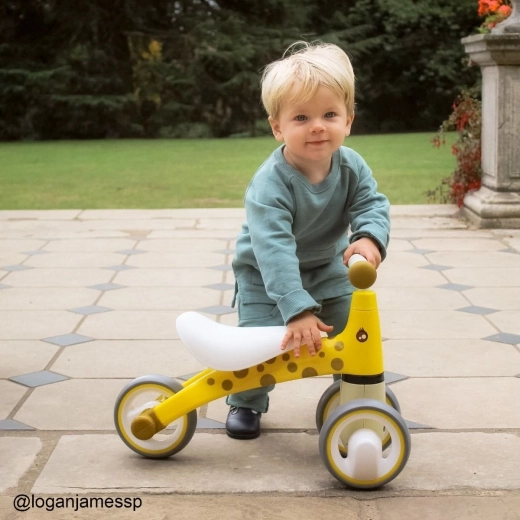 Cztery szerokie kółka zapewniają doskonałą stabilność i płynną jazdę, idealną na pierwsze kroki z jeździkiem.