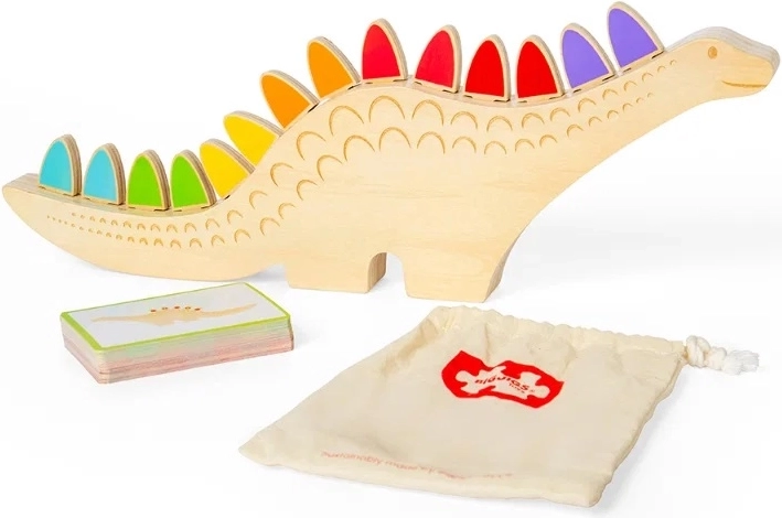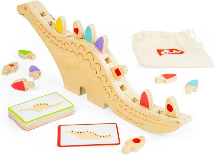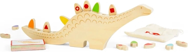 - Drewniana gra sortująca i balansująca z motywem dinozaura