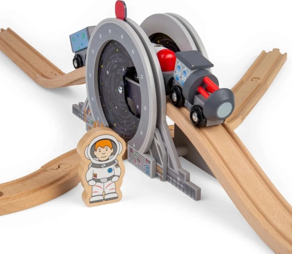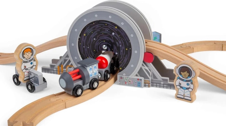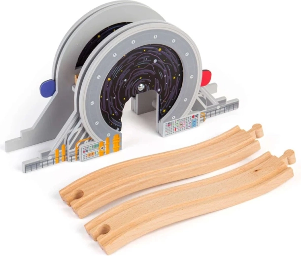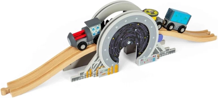 Zmieni swoją kolejkę w międzygalaktyczną trasę. Kosmiczny most z portalowym tunelem zapewnia dzieciom dynamiczne przejazdy, podjazdy i zjazdy, a do tego interaktywne okienko, które można łatwo obsługiwać praktycznymi uchwytami. Dzięki uniwersalnej kompatybilności bez trudu podłączysz go do większości standardowych drewnianych torów.