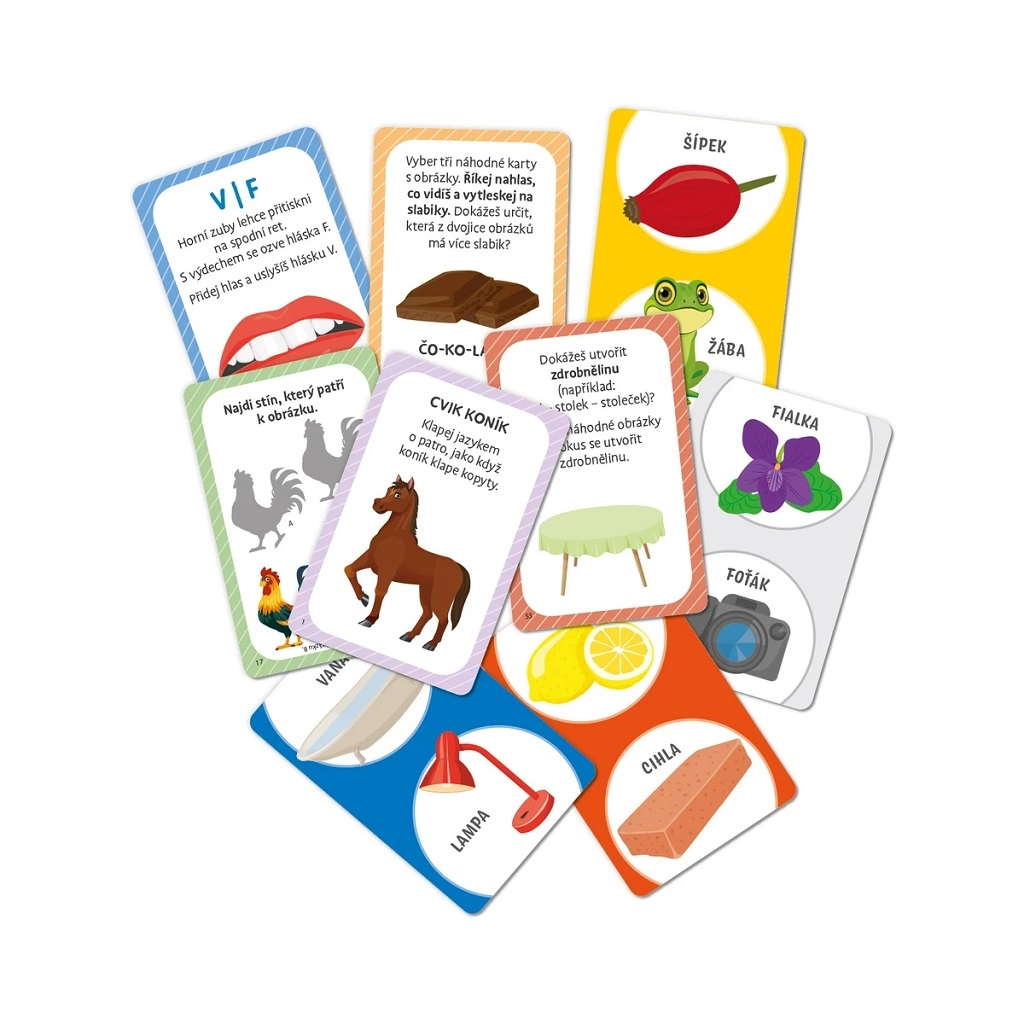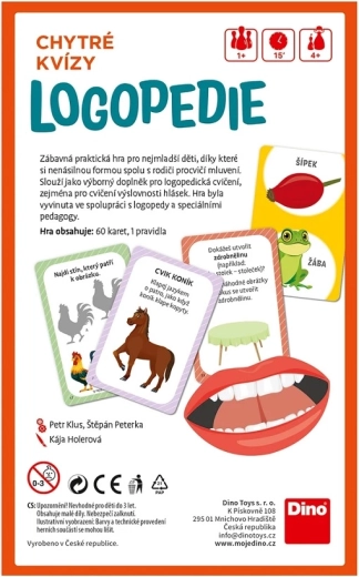 Zabawna i praktyczna gra dla najmłodszych dzieci, która we współpracy z rodzicami lub nauczycielami pomaga w łagodny sposób ćwiczyć mowę. Idealne uzupełnienie ćwiczeń logopedycznych, zwłaszcza do treningu wymowy głosek. Gra została opracowana z logopedami i pedagogami specjalnymi, zawiera 60 kart quizowych i jest wyprodukowana w Czechach.