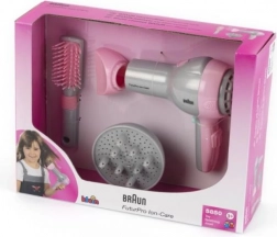 Przedstawiamy dziecięcą suszarkę Braun z dyfuzorem i szczotką, idealną dla małych fryzjerek. Produkt został wyprodukowany na licencji firmy Braun, co nadaje mu realistyczny wygląd, podobny do prawdziwego urządzenia. Produkt jest całkowicie bezpieczny, suszarka tylko wydmuchuje powietrze, nie nagrzewając się, co zapewnia bezpieczeństwo dla dziecięcych rąk.