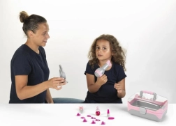 Zestaw jest licencjonowany przez markę Braun i jest zapakowany w stylowym kufrze z przezroczystym wiekiem dla łatwego przechowywania i porządku. Kuferek jest wykonany z wysokiej jakości plastiku, posiada ergonomiczną rączkę i klamrę, która zabezpiecza jego zamknięcie. Wszystkie urządzenia odpowiadają prawdziwym produktom Braun FuturPro Ion-Care, a suszarka jest wyposażona w nasadkę do prostowania włosów. To doskonały zestaw dla wymagającej, profesjonalnej małej fryzjerki.