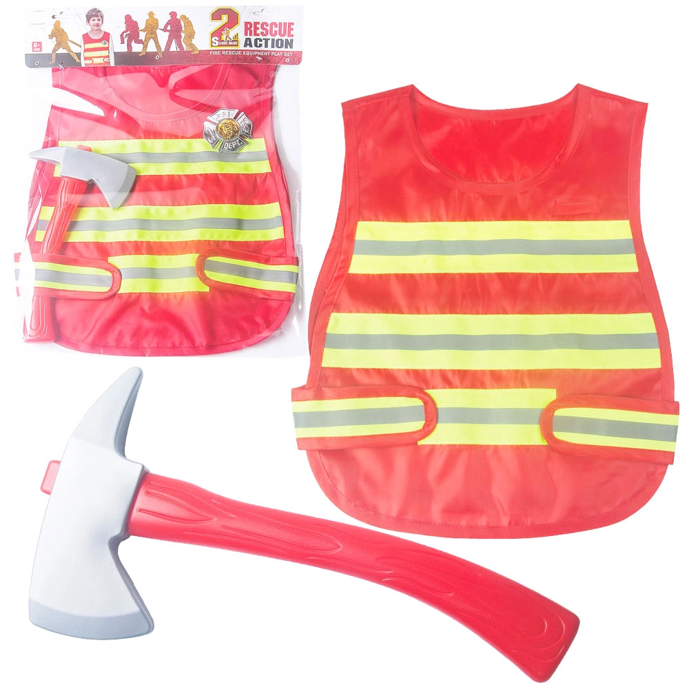 Pobudź dziecięcą wyobraźnię dzięki tej wysokiej jakości czerwonej kamizelce strażackiej, która zawiera także siekierę i odznakę strażacką. Doskonała do zabawy w odgrywanie ról, rozwijania kreatywności i aktywności ruchowej w domu i na zewnątrz.