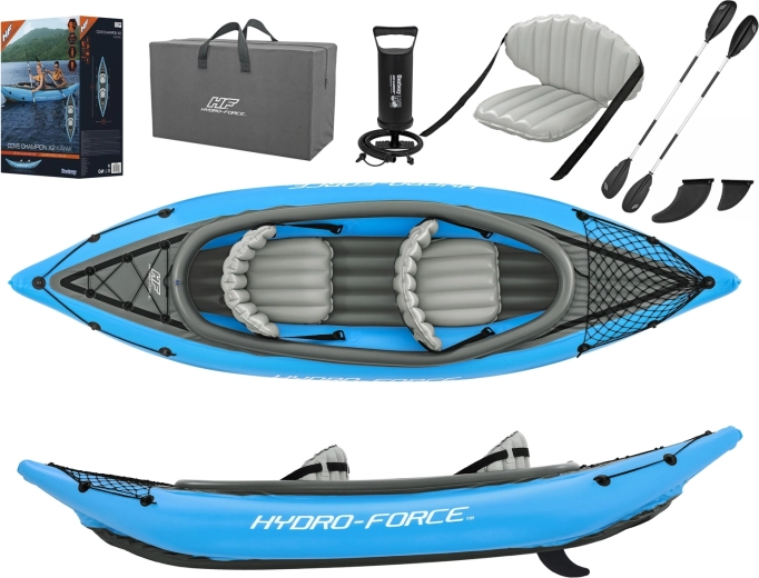 Nadmuchiwany kajak Hydro‑Force Cove Champion X2 jest idealny do rekreacyjnego pływania po jeziorach i spokojnych rzekach. W zestawie znajdziesz wszystko, czego potrzebujesz: 2 dwupiórowe wiosła, ręczną pompkę Air Hammer, 2 regulowane nadmuchiwane siedzenia z oparciem oraz torbę transportową. Wytrzymała, wielokomorowa konstrukcja z sztywną, dmuchaną podłogą gwarantuje stabilność i pewność na wodzie.