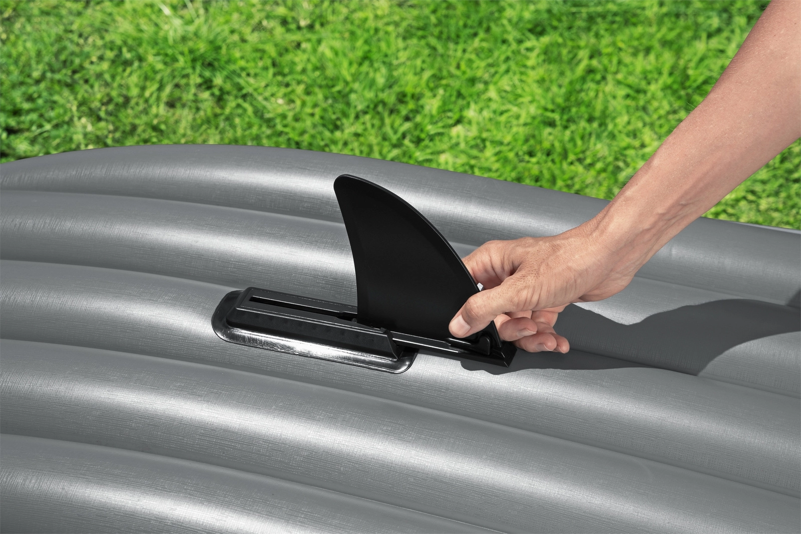 Zamontuj płetwę, aby utrzymać stabilny kurs na spokojnej wodzie i przy lekkim wietrze. Łatwe wsuwanie i zdejmowanie ułatwia kompaktowe przechowywanie kajaka.
