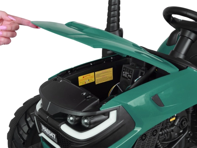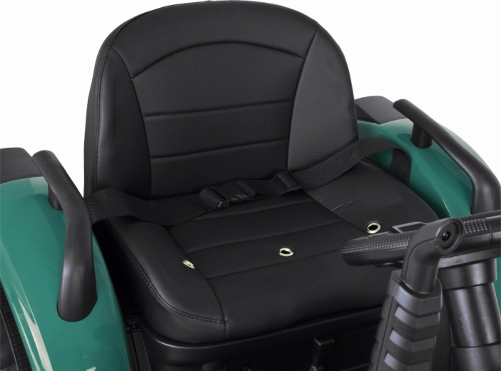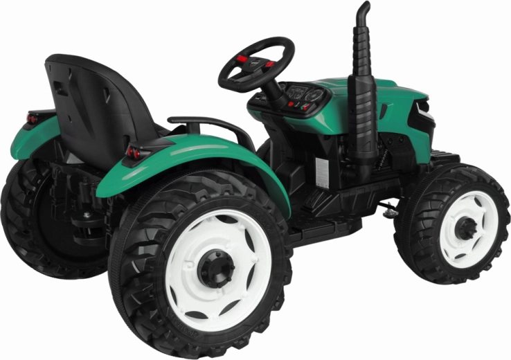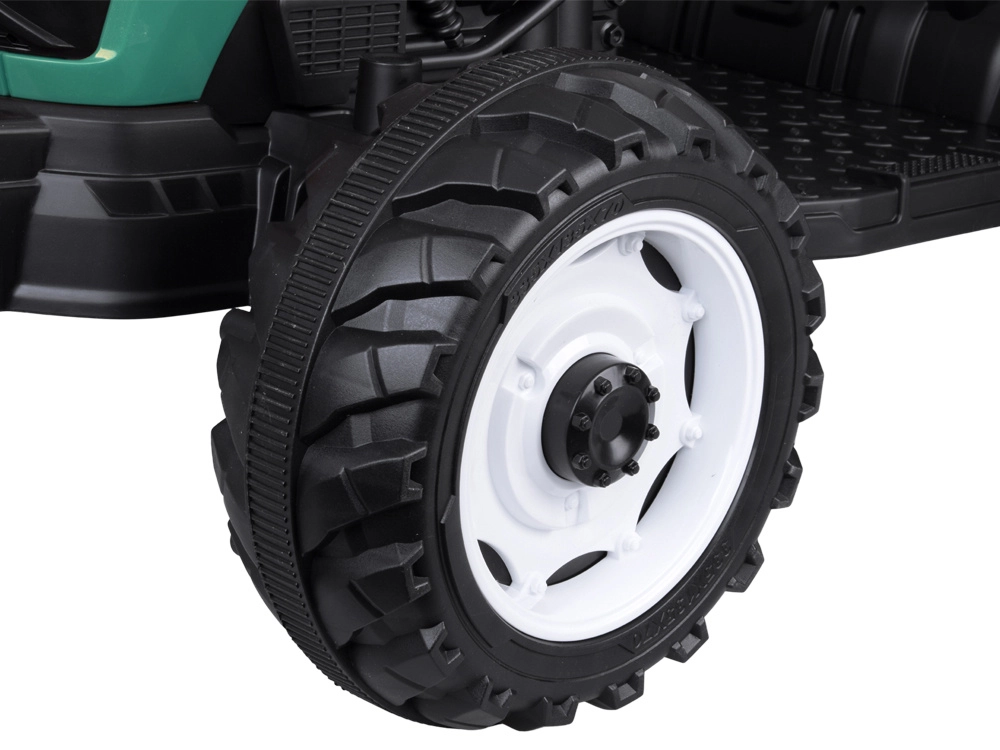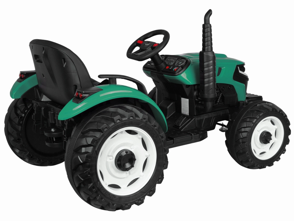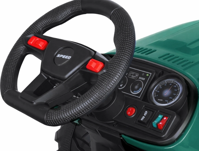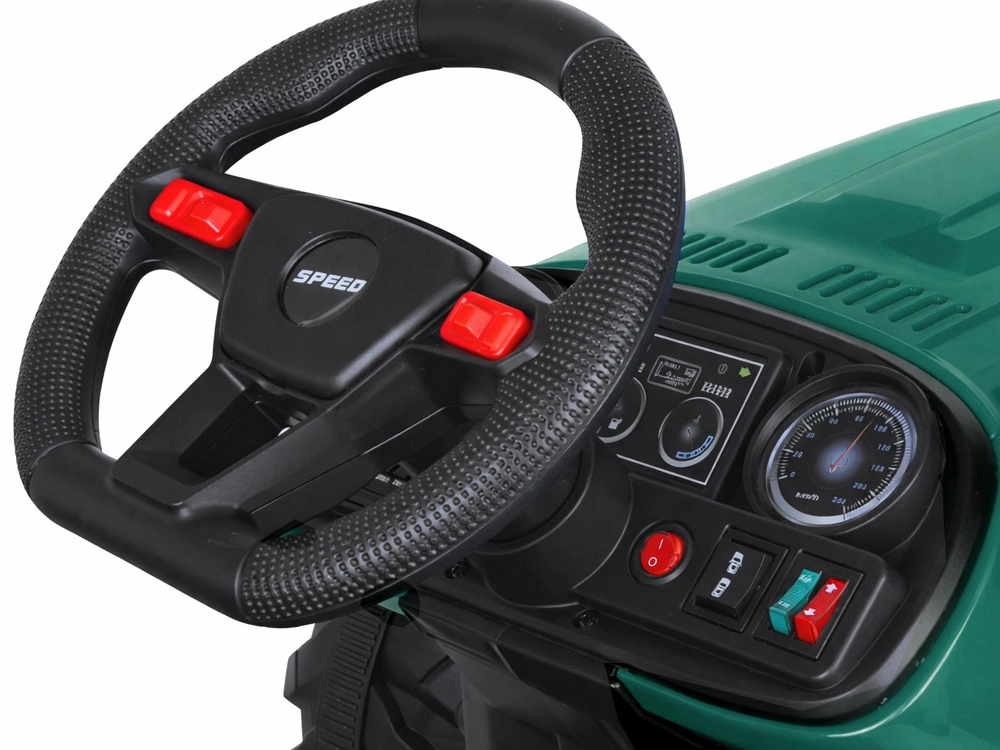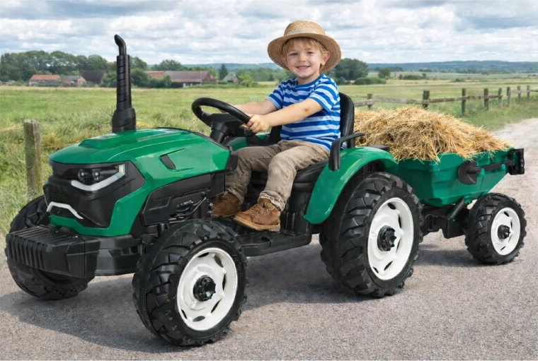 Elektryczny traktor z odłączaną przyczepą to świetny wybór dla małych farmerów. Duże profilowane koła poradzą sobie z trawą i utwardzonymi ścieżkami, płynny start bez szarpnięć zwiększa komfort, a pas bezpieczeństwa trzyma dziecko pewnie w siodle. Panel sterowania ze światłami, klaksonem i USB dodaje przejazdom klimatu.