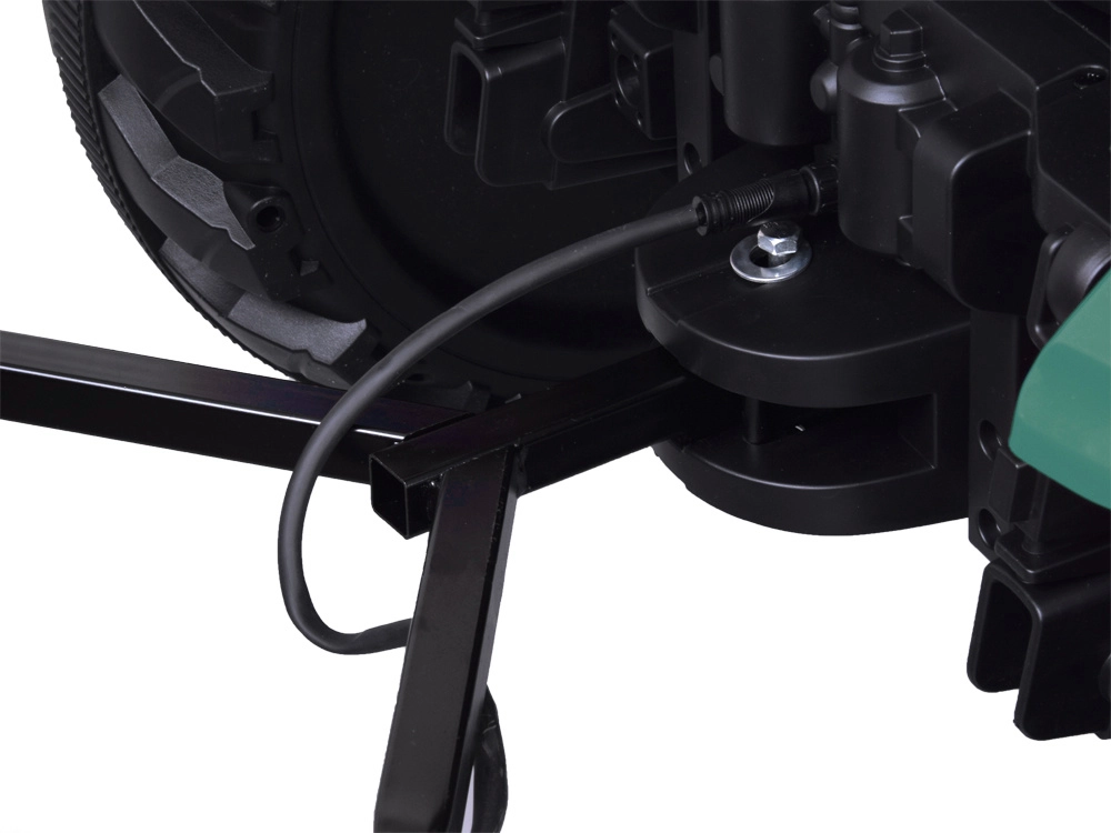 Dwa wydajne silniki zapewniają jazdę bez szarpania do ok. 6 km/h. Duże koła z głębokim bieżnikiem trzymają tor na trawie i twardej nawierzchni.