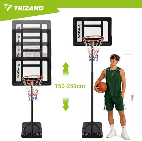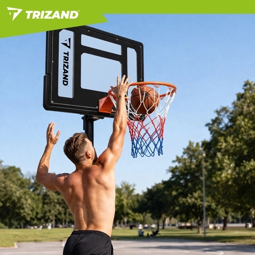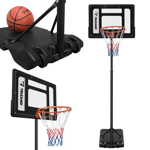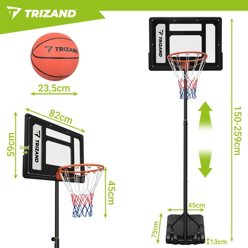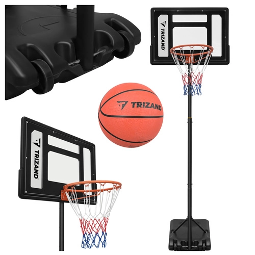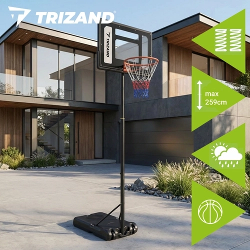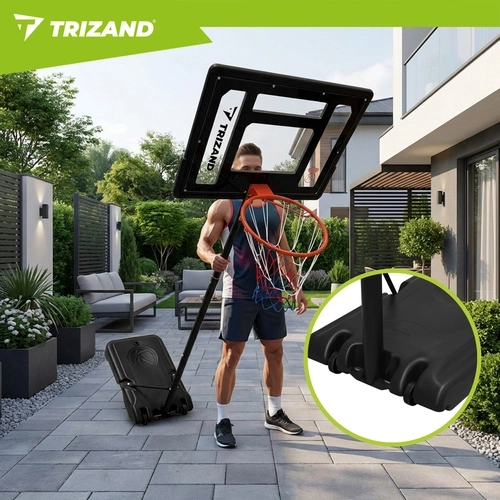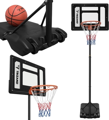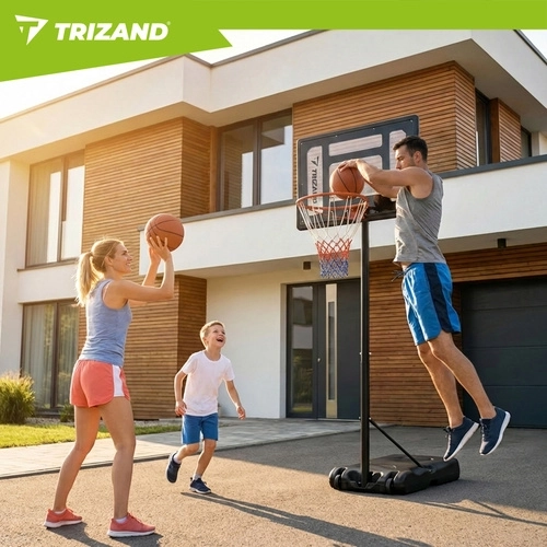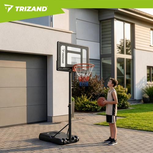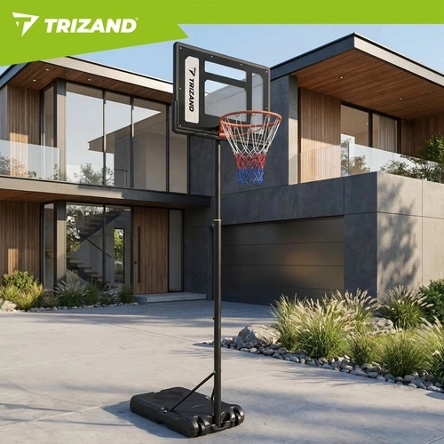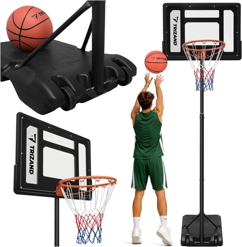 Zestaw zawiera tablicę, obręcz z siatką, stojak z podstawą oraz piłkę do koszykówki. Po szybkiej montażu możesz natychmiast rozpocząć trening.