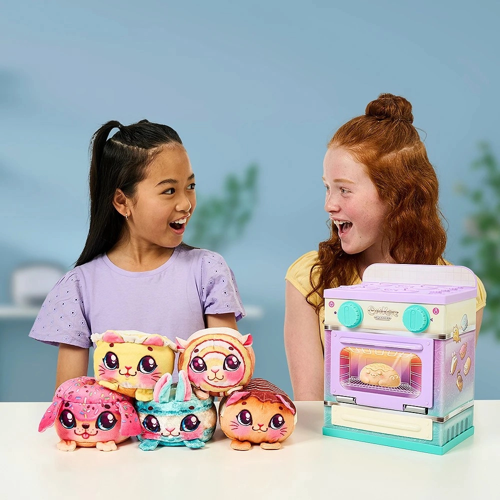 Ten zestaw przynosi magię przemiany – światełka, przyjemne ciepło i słodki zapach tworzą wyjątkowy moment zaskoczenia. W każdym piekarniku znajduje się jeden z 6 kolekcjonerskich przytulaków (kotek, króliczek, piesek i inne), każdy z własnym wyglądem i zapachem. Idealny pomysł na prezent dla małych twórców i miłośników niespodzianek.