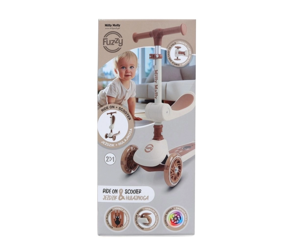 Odkryj zabawną i bezpieczną jazdę z dziecięcą trójkołową hulajnogą z siedziskiem FUZZY Classic w eleganckim beżowym kolorze. Dzięki dwóm przednim kołom z oświetleniem LED, balansowemu sterowaniu przechyłem, regulowanej wysokości kierownicy oraz antypoślizgowemu podestowi jest idealna na pierwsze kroki na hulajnodze. Stabilna konstrukcja, tylny hamulec nożny i wygodne siedzisko wspierają równowagę, koordynację i pewność małych kierowców.