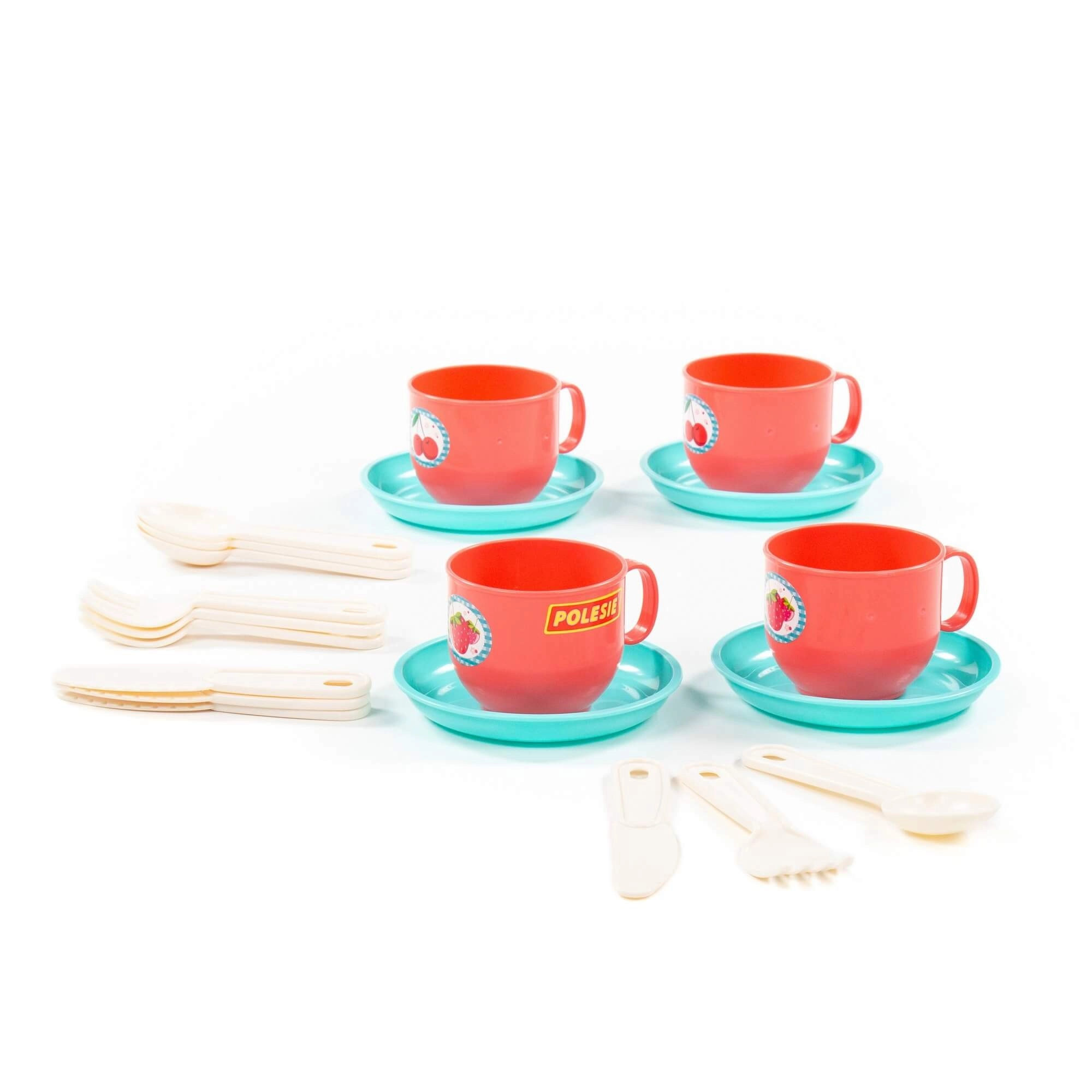 - 20‑elementowy zestaw dla 4 osób – talerzyki, kubeczki i inne akcesoria do realistycznej zabawy.