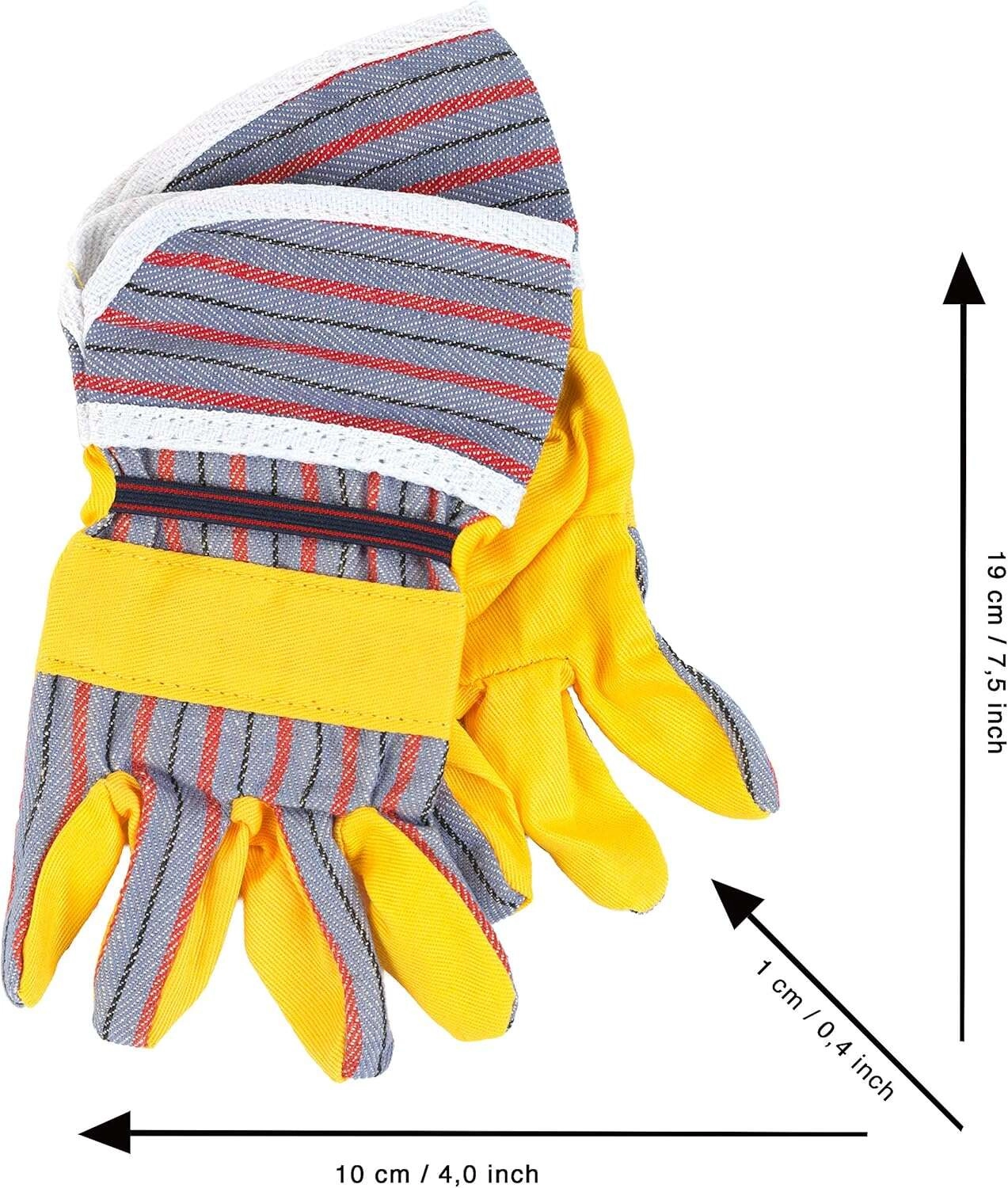Wierna kopia rękawic roboczych z żółtymi dłońmi i szarymi pasiastymi wierzchami dla autentycznej zabawy w rzemieślników.