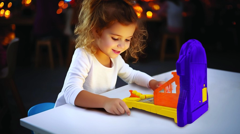 Zintegrowany wyświetlacz pokazuje bieżący wynik, a efekty świetlne i dźwiękowe nagradzają każdy celny rzut i utrzymują dzieci w motywacji.
