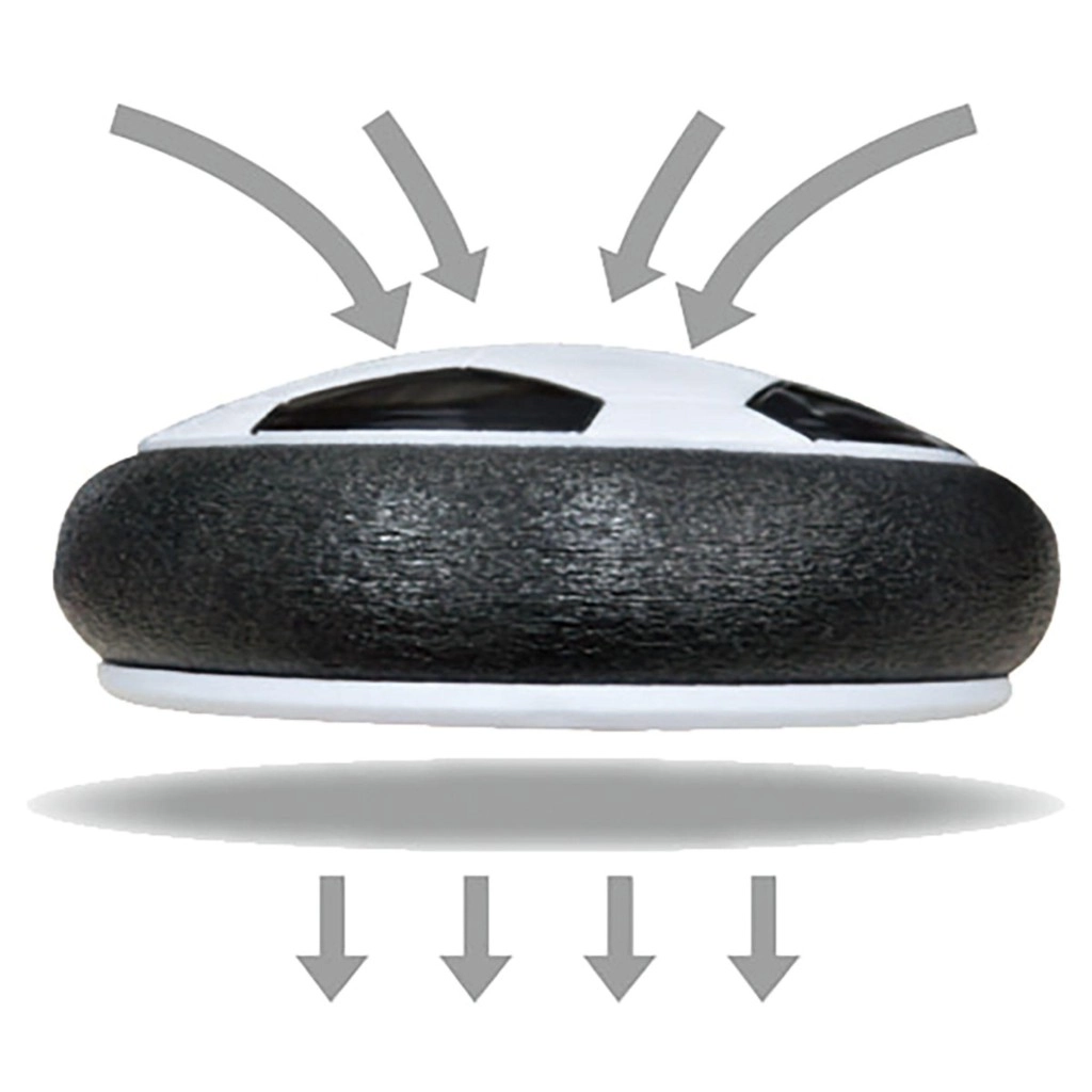 Lexibook AeroFoot łączy klasyczną piłkę nożną z nowoczesną technologią. Świecący dysk o aerodynamicznym kształcie gładko sunie po podłodze, a miękka piankowa krawędź amortyzuje uderzenia i chroni ściany oraz meble. Kolorowe efekty LED zwiększają widoczność ruchu dysku i zapewniają atrakcyjną grę także o zmierzchu.