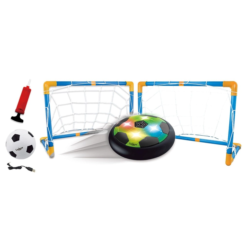 Interaktywny piłkarski LED w domu i na zewnątrz – lekki ślizgający się dysk z piankowym zderzakiem chroniącym meble, wielokolorowym oświetleniem LED dla zabawy także o zmierzchu oraz akumulatorem NiMH do ładowania. W zestawie znajdziesz także 2 przenośne bramki, 2 dmuchane piłki i pompkę, aby szybko rozpocząć grę.