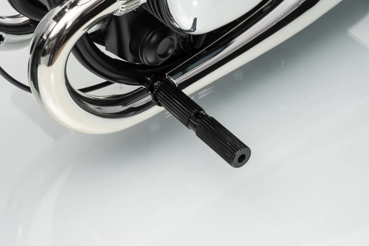 Realistyczne wrażenia potęguje przednie światło LED, podświetlane „tłoki” oraz dopracowane detale, w tym lusterka i wydechy. Dla początkujących przewidziano boczne kółka i łagodny start (płynne ruszanie). Dzieci mogą cieszyć się jazdą przy ulubionej muzyce dzięki panelowi Bluetooth/MP3, nie brakuje klaksonu i wgranych melodii.