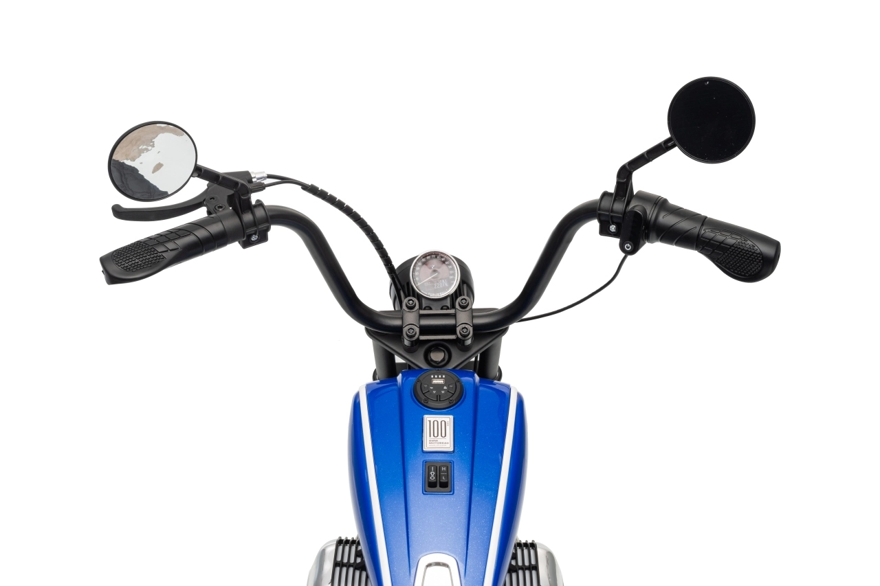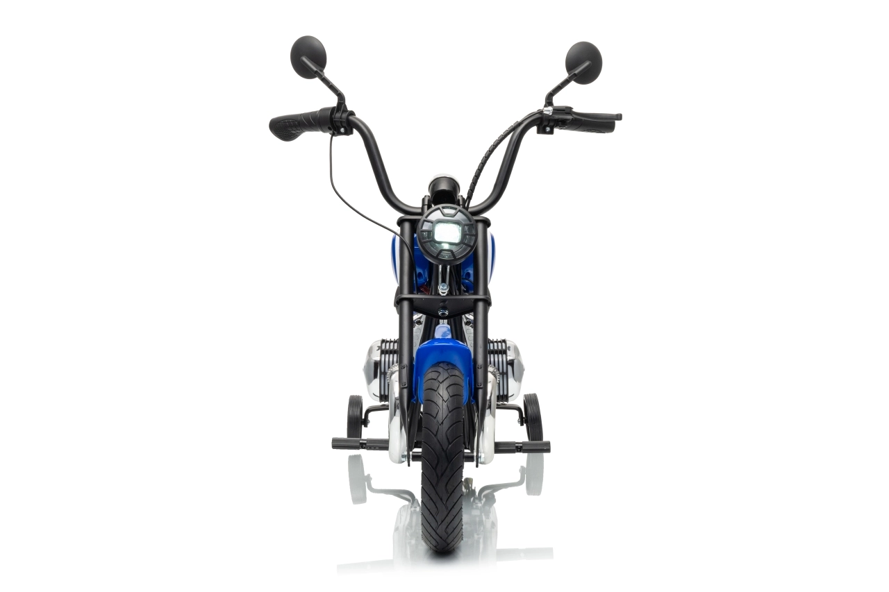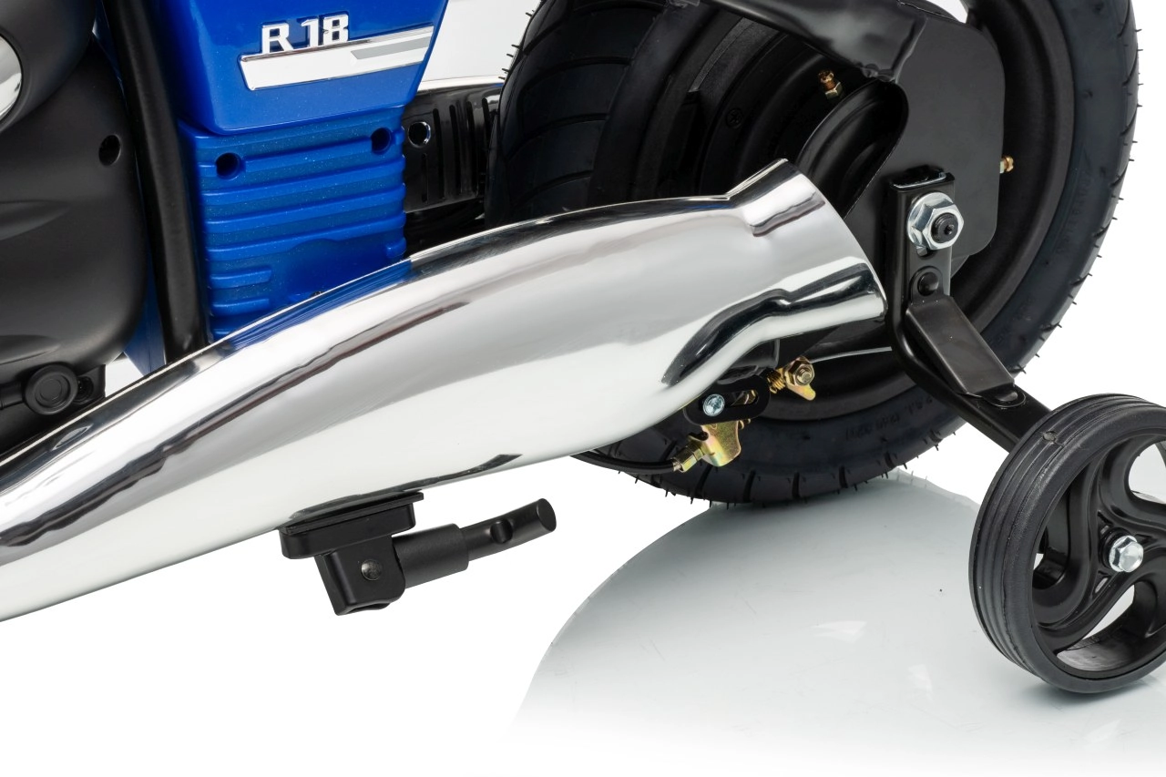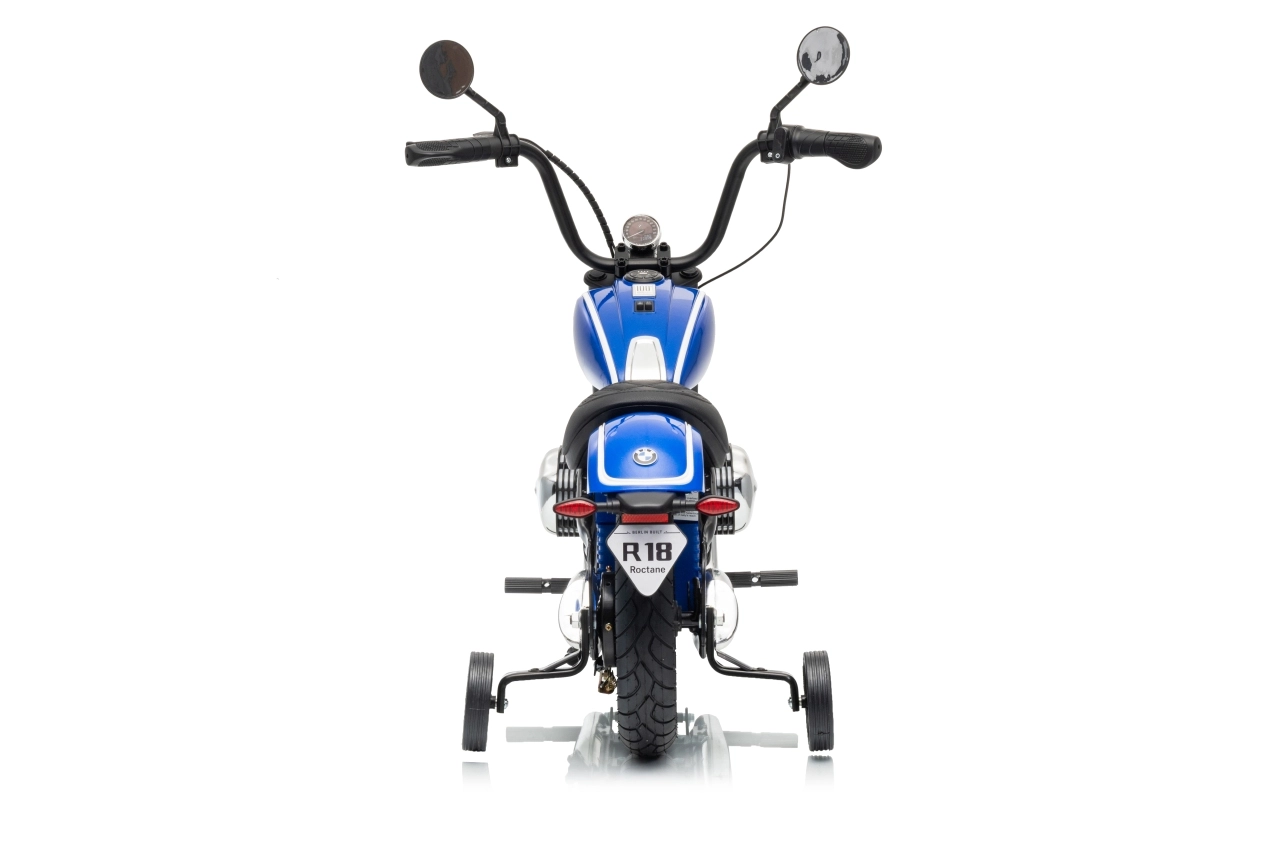 Stylowy dziecięcy motocykl elektryczny BMW R18 w niebieskim kolorze zapewnia realistyczne wrażenia z jazdy dzięki wydajnemu bezszczotkowemu silnikowi 200 W, baterii 24 V / 7 Ah oraz oponom pneumatycznym dla wygodnej jazdy. Bezpieczeństwo zwiększają boczne kółka stabilizujące, płynny start i oświetlenie LED. Nie brakuje Bluetooth, MP3, klaksonu i wgranych melodii dla maksymalnej zabawy.