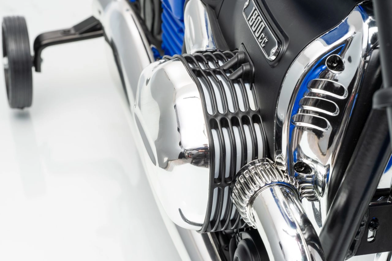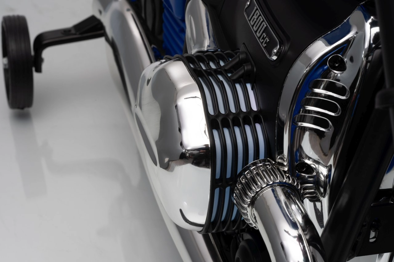 Motocykl BMW R18 dla dzieci łączy kultowy design cruisera z przemyślanym wyposażeniem dla bezpiecznej i radosnej jazdy. Dzięki bezszczotkowemu silnikowi 200 W i baterii 24V/7Ah oferuje żwawą dynamikę i dłuższą wytrzymałość. Opony pneumatyczne 31 × 7 cm świetnie tłumią nierówności i zapewniają pewny kontakt z nawierzchnią.