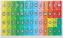 • Nauka przez zabawę – naklejki z literami, liczbami i symbolami matematycznymi.