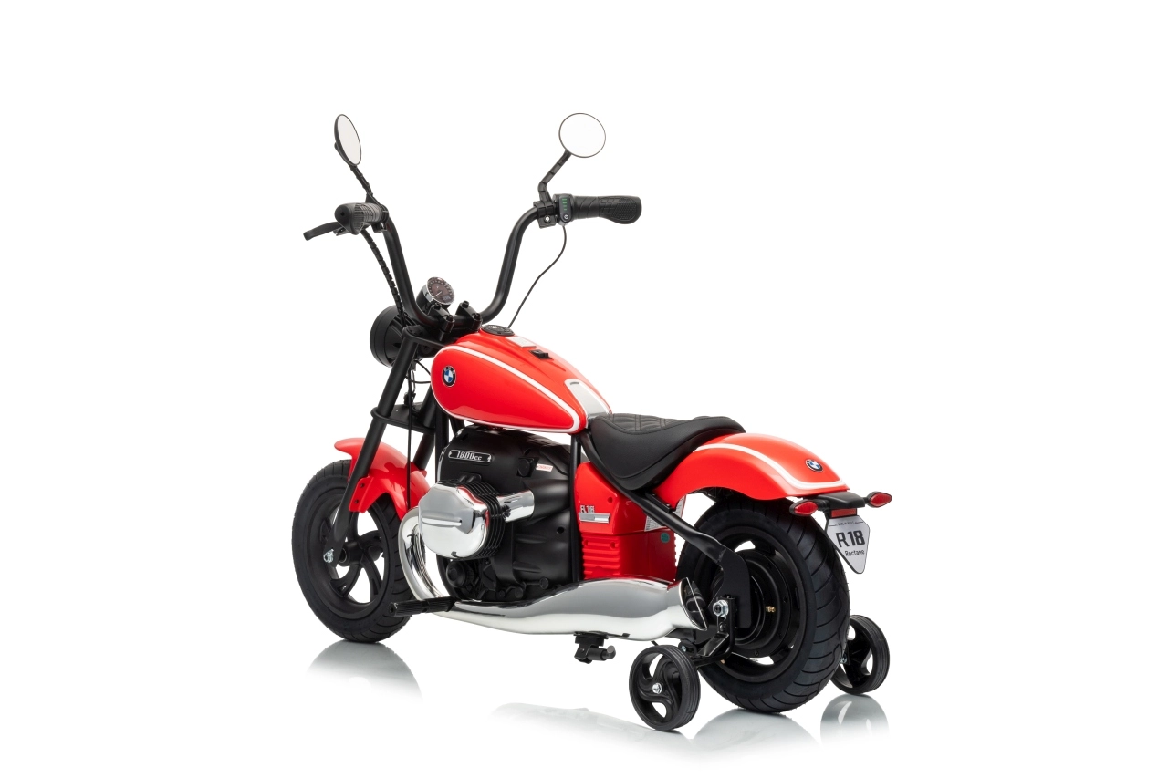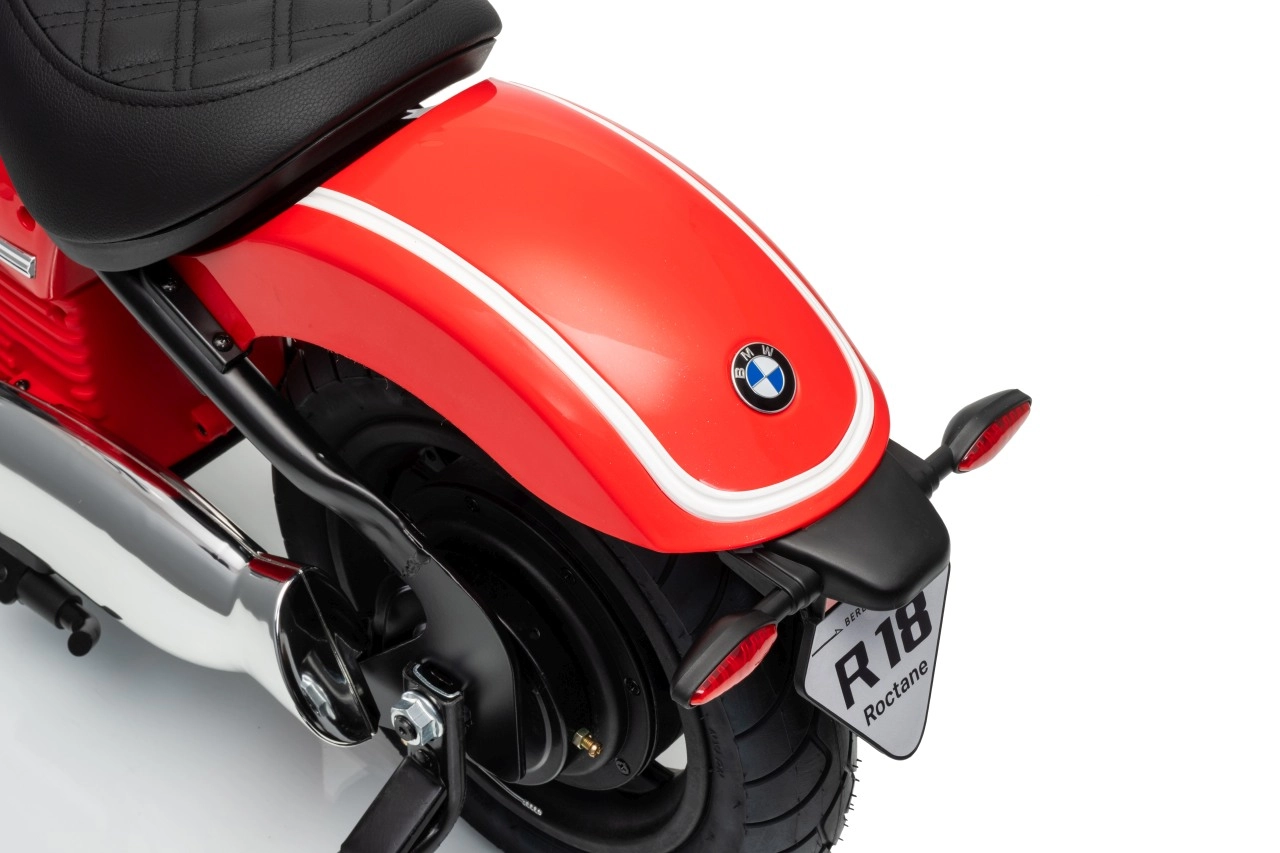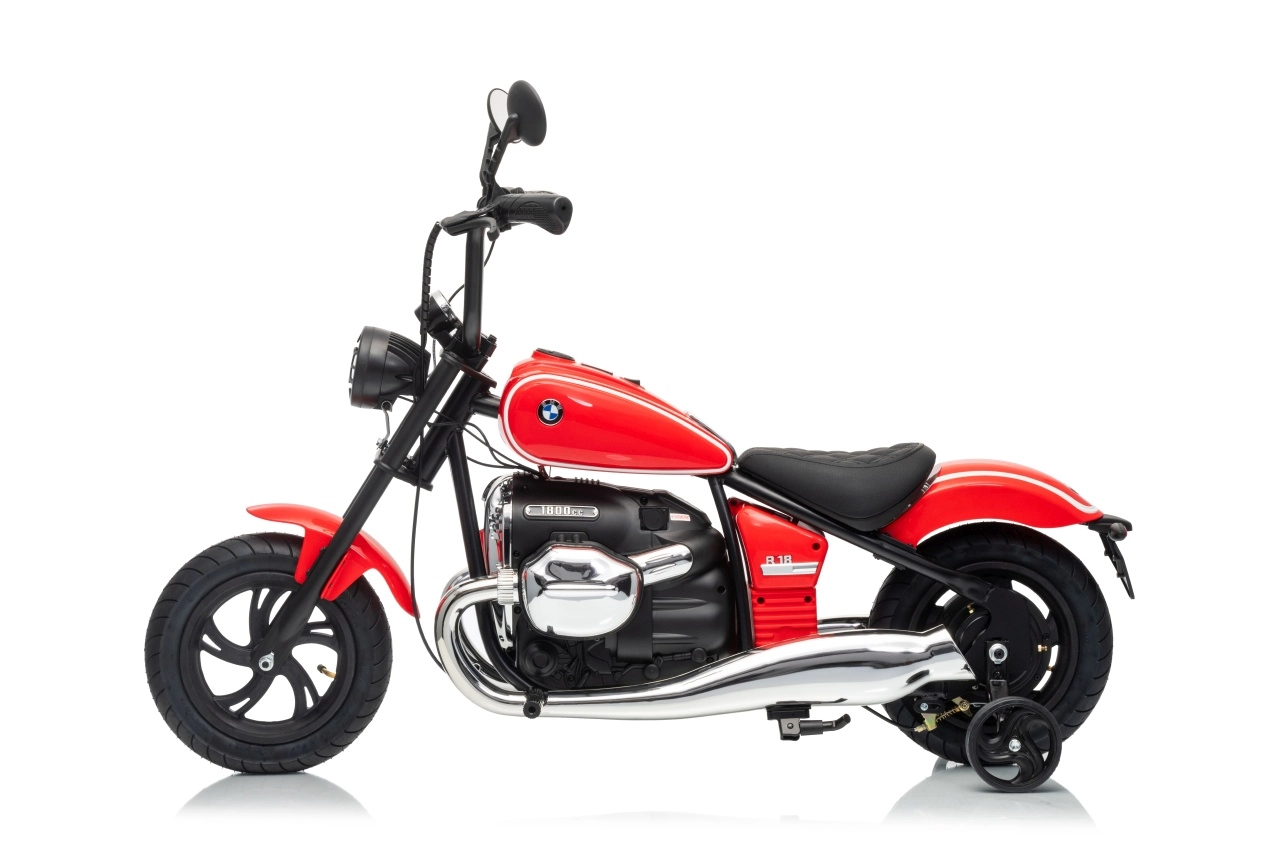 Stylowy dziecięcy motocykl elektryczny BMW R18 w eleganckim czerwonym kolorze oferuje małym kierowcom realistyczne wrażenia z jazdy. Mocny silnik bezszczotkowy 200 W, wydajny akumulator 24 V 7 Ah, pompowane koła dla lepszej przyczepności oraz boczne kółka stabilizujące dla bezpiecznych początków. Do tego światła LED, panel audio z Bluetooth i MP3, klakson oraz wygodne siedzisko z ekoskóry.