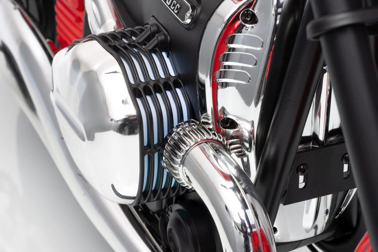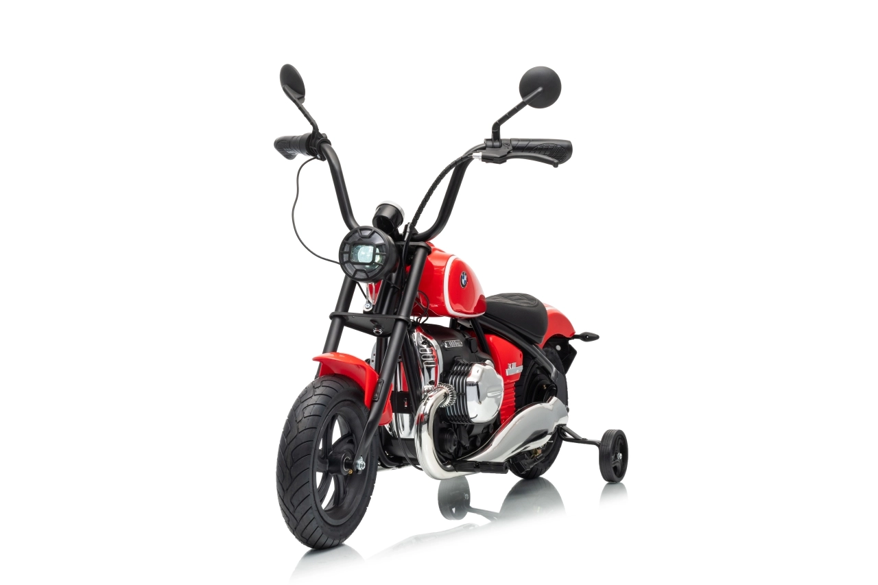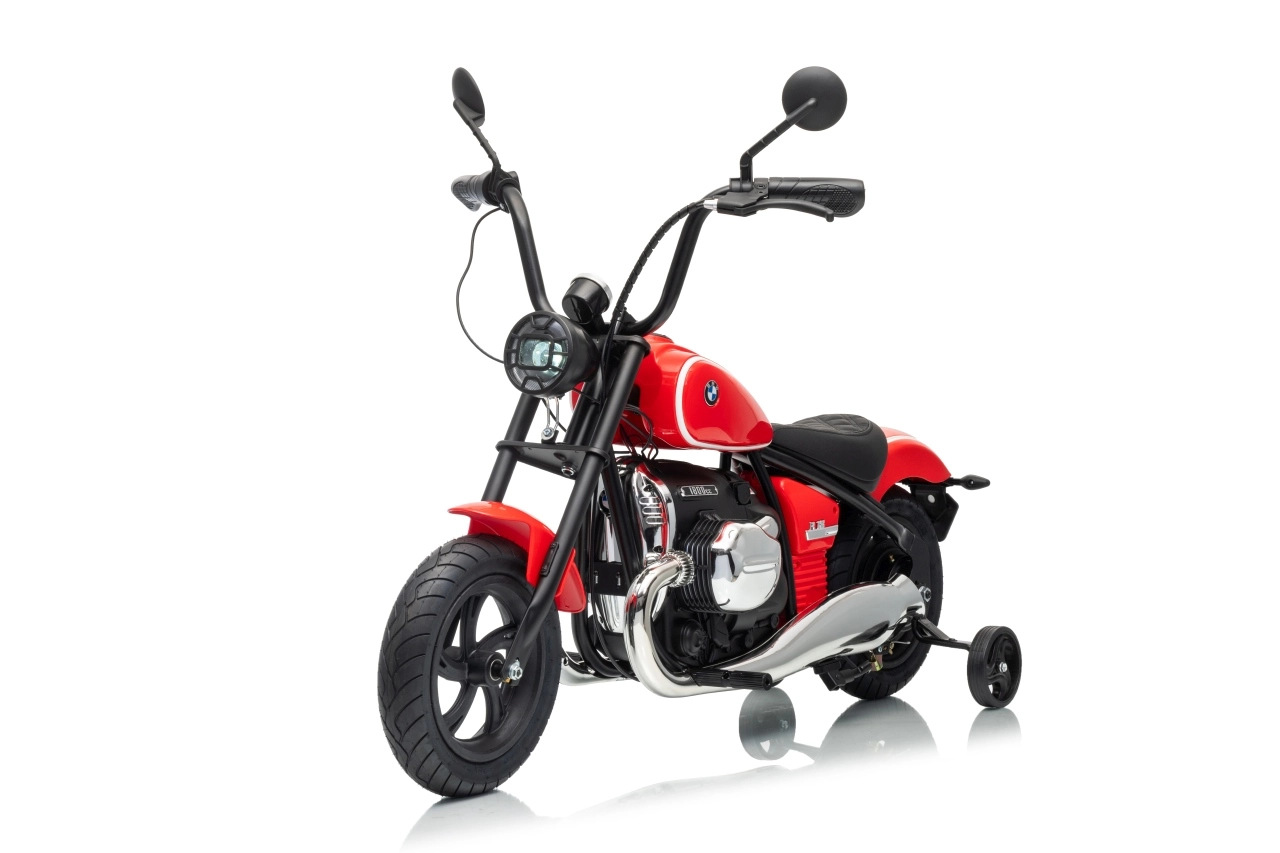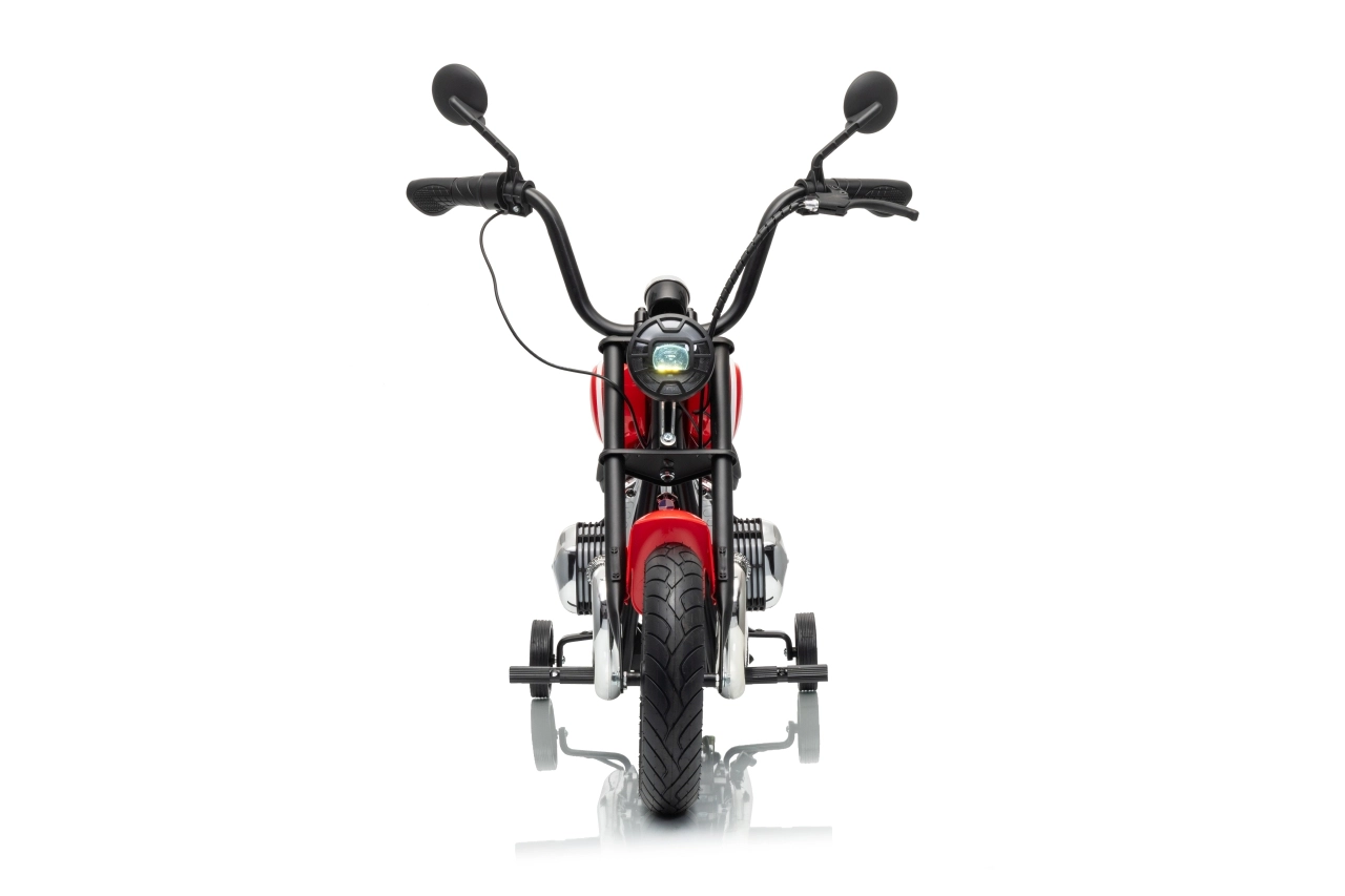 Stylowy dziecięcy motocykl elektryczny BMW R18 w eleganckim czerwonym kolorze oferuje małym kierowcom realistyczne wrażenia z jazdy. Mocny silnik bezszczotkowy 200 W, wydajny akumulator 24 V 7 Ah, pompowane koła dla lepszej przyczepności oraz boczne kółka stabilizujące dla bezpiecznych początków. Do tego światła LED, panel audio z Bluetooth i MP3, klakson oraz wygodne siedzisko z ekoskóry.