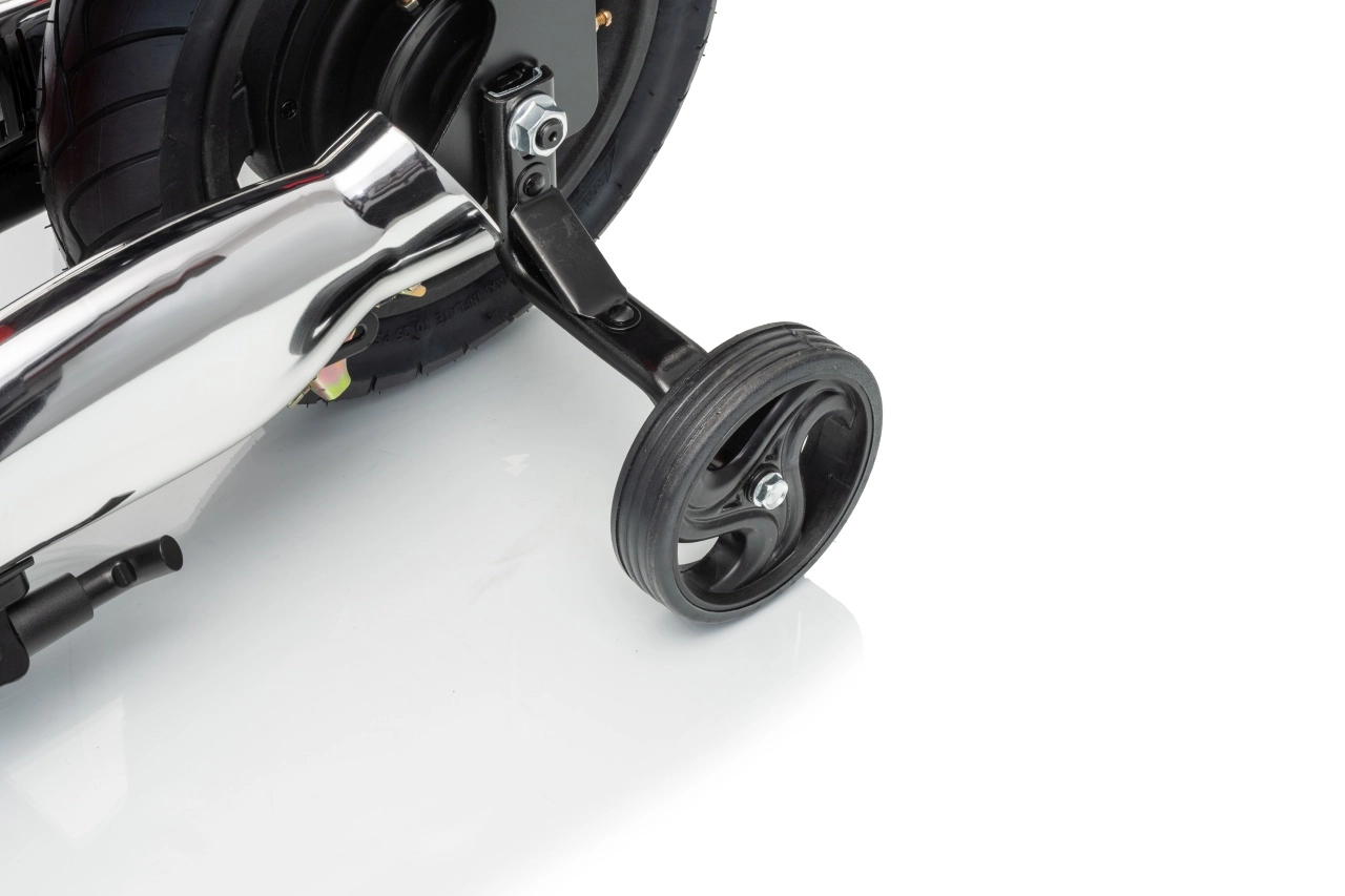 Premiumowy motocykl dla dzieci inspirowany kultowym stylem BMW łączy świetne osiągi, komfort i bezpieczeństwo. Dzięki bezszczotkowemu silnikowi 200 W i akumulatorowi 24 V 7 Ah dzieci cieszą się żwawą i płynną jazdą. Pompowane koła lepiej tłumią nierówności, a z bocznymi kółkami motocykl jest stabilny także dla początkujących.