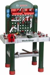 Ten w pełni wyposażony stół roboczy dla dzieci na licencji BOSCH zamieni pokój w mały warsztat. Przejrzyste przechowywanie zapewniają perforowana tylna ścianka z haczykami, półka pod blatem oraz 3 praktyczne pojemniki na drobiazgi. Nie brakuje także funkcjonalnego dziecięcego ścisku do pewnego mocowania elementów oraz stabilnej powierzchni roboczej.