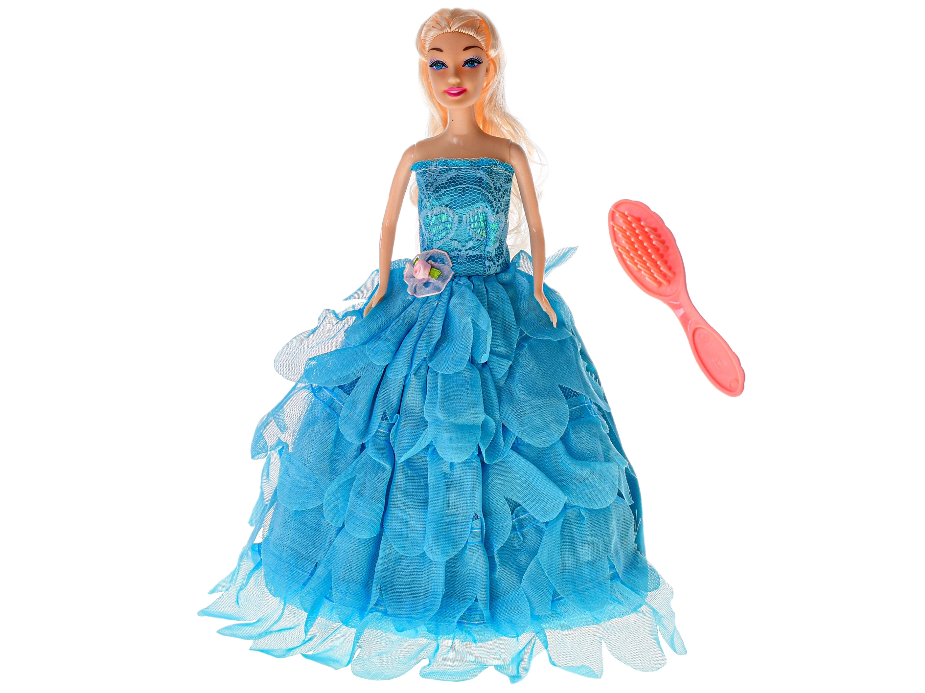 Ta stylowa lalka księżniczka oferuje dzieciom nieskończone możliwości zabawy i opowiadania własnych bajkowych historii. Dzięki eleganckiej sukni i dopracowanym detalom stanie się ulubioną postacią w każdym dziecięcym królestwie. Praktyczne akcesoria, takie jak grzebyk i korona, pobudzają kreatywność oraz zachęcają do zabaw w czesanie i stylizację.