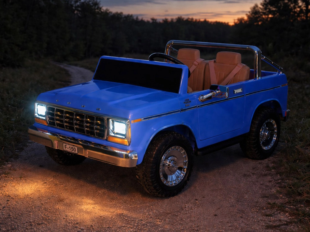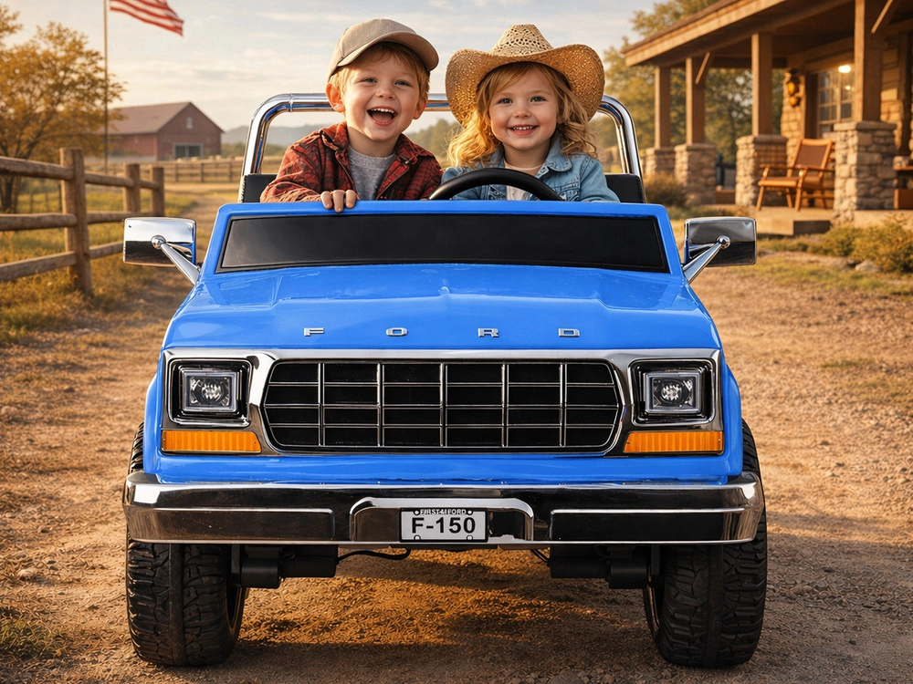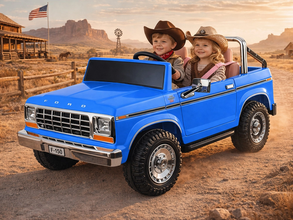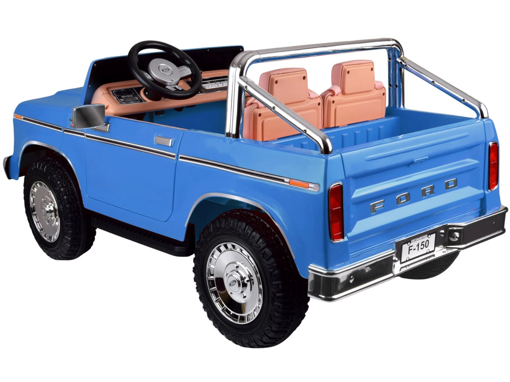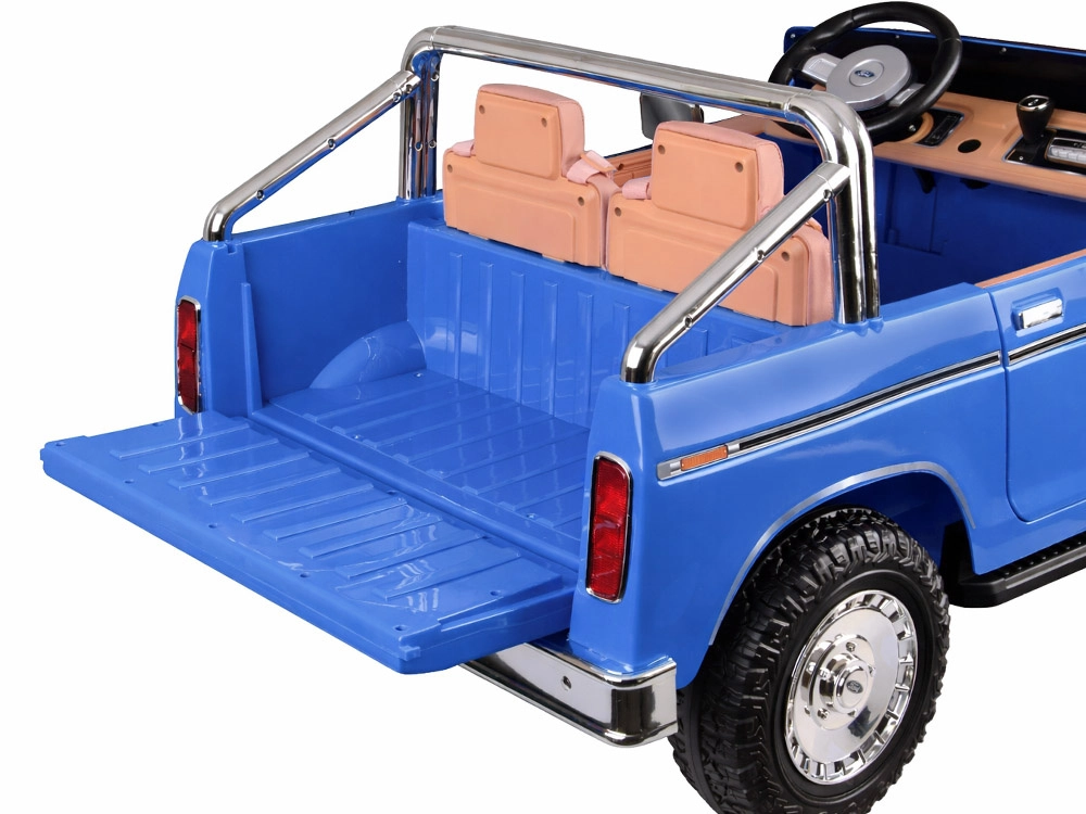 Legendarny wygląd amerykańskiego pick-upa w wersji dla dzieci. Elektryczny samochodzik dla dwojga małych kierowców zachwyca klasycznymi kształtami, chromowanymi detalami oraz starannie wykończonym wnętrzem z ekoskórzanymi siedzeniami, wskaźnikiem naładowania baterii i dźwignią zmiany kierunku jazdy. Z przodu ma reflektory, po bokach lusterka, a także otwierane drzwi dla wygodnego wsiadania oraz otwieraną tylną burtę.