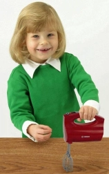 Realistyczny dziecięcy mikser BOSCH marki Klein oferuje dzieciom bezpieczną i zabawną zabawę w gotowanie. To wierna kopia prawdziwego urządzenia, ma wyjmowane trzepaczki, proste sterowanie przyciskiem oraz klikane „regulowanie” prędkości. Świetny wybór dla małych kucharzy i kucharek, którzy lubią naśladować dorosłych.