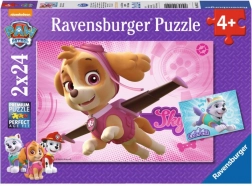 Odkryj radość układania z dziecięcymi puzzlami Ravensburger 2×24 elementy z motywem Psi Patrol. Każdy obrazek po ułożeniu tworzy żywą i szczegółową scenę ze Skye i Everest o wymiarach 27,5 × 19,2 cm. Dzięki precyzyjnemu wykonaniu elementy łatwo się łączą i pewnie trzymają razem.