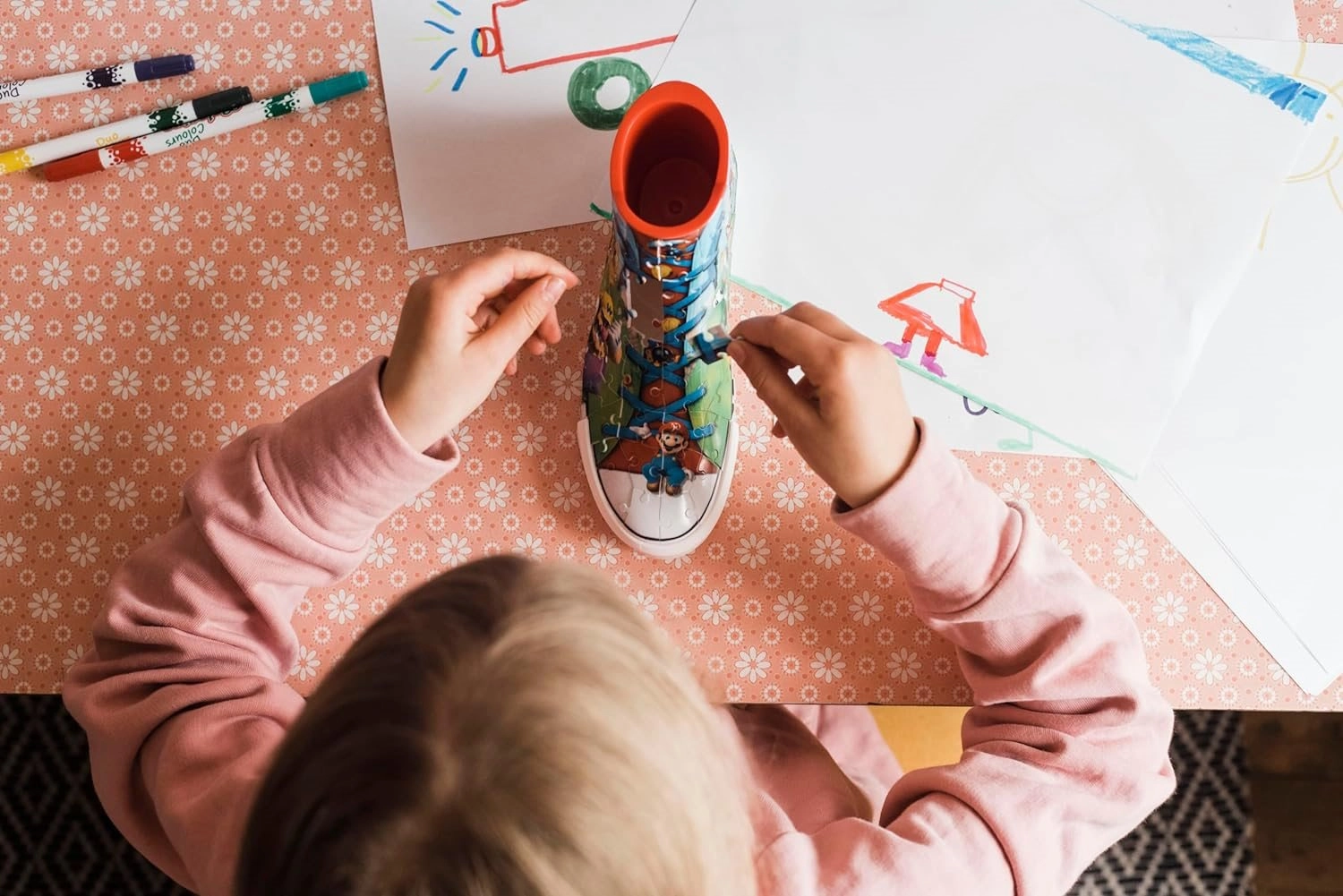 Złóż z 108 plastikowych elementów puzzle tę klasyczną trampkę z motywem Super Mario i zyskaj świetną dekorację do pokoju! Po ułożeniu czeka na ciebie dodatkowy bonus: możesz jej używać na pędzle, ołówki itp.