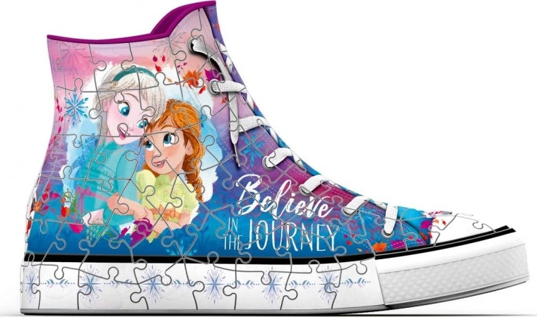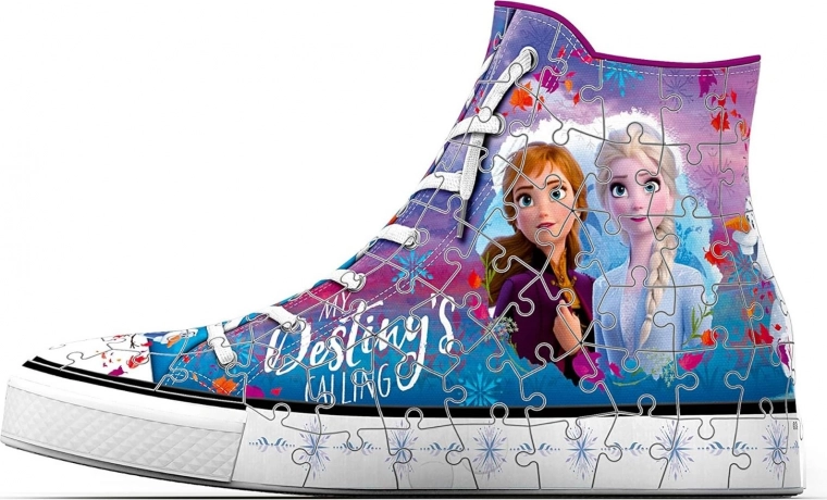 Genialne połączenie zabawy i praktyczności: 3D puzzle w kształcie wysokiego trampka z ulubionymi bohaterkami z filmu Kraina Lodu 2. Dzięki solidnym plastikowym elementom zbudujesz trwałą dekorację, która służy jako pojemnik na ołówki, kredki i nożyczki – bez kleju, łatwo i z perfekcyjnym rezultatem.