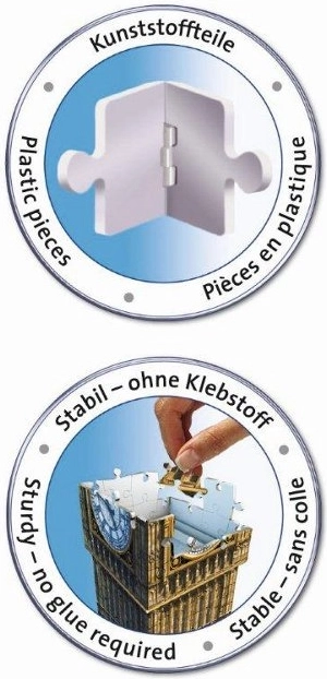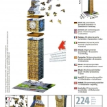 Zestaw zawiera łącznie 216 ponumerowanych elementów puzzli, 8 sztuk akcesoriów i szczegółową instrukcję. Po zakończeniu, puzzle mierzy około 18 x 18 x 41 cm. Ten model jest idealny zarówno dla fanów marki Ravensburger, jak i dla tych, którzy uwielbiają architekturę i Londyn.