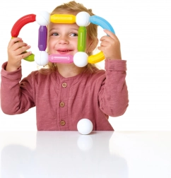 Magnetyczna konstrukcja SmartMax Start Plus to idealny wybór dla małych odkrywców. Zestaw zawiera 30 elementów, w tym długie pałeczki, średnie pałeczki, zakręty i kulki łączące, które umożliwiają budowę prostych i skomplikowanych konstrukcji. Dzieci mogą próbować różnych 2D i 3D kształtów oraz budowli, takich jak wieże czy mosty.