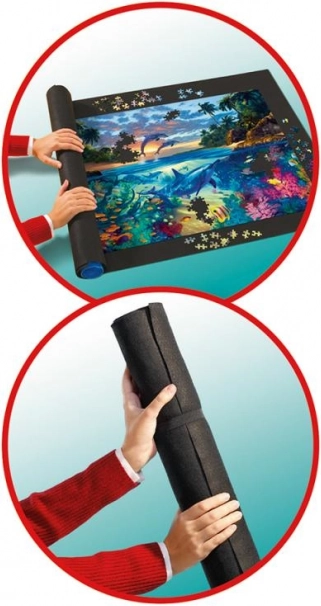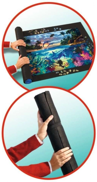 Oszczędzaj miejsce i chroń swoje ułożone oraz rozpoczęte puzzle dzięki rolowanej macie RAVENSBURGER. Nie ślizga się, ma wysokiej jakości plastikowy wałek z opatentowanym systemem i jest idealna do puzzli do 1500 elementów (ok. 100 × 60 cm). Wystarczy ułożyć, zrolować, zabezpieczyć gumowymi paskami i możesz bezpiecznie przechowywać lub przenosić.
