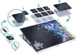 Ta pochylona deska do puzzli zapewnia wygodną i efektywną powierzchnię do układania, która zapobiega zsuwaniu lub przesuwaniu kawałków z miejsca. Z wymiarami 72 x 51 cm oferuje wystarczająco dużo miejsca nawet dla najbardziej skomplikowanych projektów puzzli.