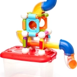 Ten duży zestaw magnetycznych klocków jest idealny do budowy unikalnego toru kulkowego. Zawiera 15 prętów, 12 kulek i 17 elementów budowlanych, wszystkie wystarczająco duże dla małych dziecięcych rąk. Wszystkie części są przechowywane w praktycznym plastikowym pojemniku z czerwoną pokrywką, która służy jako podkładka budowlana. SMARTMAX® spełnia normy bezpieczeństwa ASTM F963 i EN71.