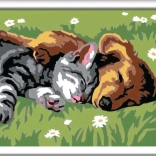 CreArt – to kreatywna zabawa dosłownie dla każdego. Na chwilę stań się profesjonalnym malarzem i namaluj własny obraz. Ten śpiący piesek i kotek rozświetlą każdą ścianę. Stopniowo wypełniaj kolejne pola zgodnie z instrukcją (każdy numer na płótnie odpowiada konkretnej barwie) i ciesz się radością z twórczej pracy, która zapewni rozrywkę na długie godziny. Malowanie to świetna aktywność, która nie tylko bawi, ale także ćwiczy zręczność, poprawia koncentrację oraz gwarantuje satysfakcję i poczucie dumy wszystkim artystom. Zestaw zawiera wszystko, czego potrzebujesz do malowania: wysokiej jakości, wytrzymałe płótno z wzorem i ponumerowanymi polami, zestaw farb akrylowych, pędzelek, tekturową podstawkę na kubeczki z farbami oraz ramkę. Pomalowane pola tworzą profesjonalnie wyglądające dzieło sztuki. Gdy tylko ukończysz obraz, pozostaw go do wyschnięcia i opraw w ramkę, która jest częścią zestawu. Malowanie nigdy nie było tak proste.