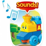 Odkryj radość z nauki z muzycznym pociągiem z literkami od MEGA BLOKS. Dzieci mogą połączyć trzy wagoniki, załadować kolorowe klocki z literami i podczas budowania pociągu bawić się, ucząc jednocześnie alfabetu i pierwszych słów. Interaktywny komin dodaje zabawne dźwięki pociągu oraz wesołą piosenkę, które utrzymują uwagę i wspierają percepcję sensoryczną.