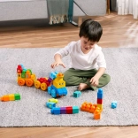 Kolorowe klocki z literami wspierają rozpoznawanie kształtów liter i pierwsze układanie słów. Dzieci w naturalny sposób rozwijają słownictwo oraz myślenie logiczne.