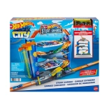 Hot Wheels Stunt Garage to jedyny garaż, który pozwala samochodzikom przeskakiwać z jednego poziomu na drugi. Skorzystaj z windy, aby przewieźć autka na dowolny poziom, gdzie możesz zaparkować lub zeskoczyć na niższe piętro. Można parkować samochodziki na wyższym poziomie lub zrobić „przegląd” na dole. Zatankuj i przygotuj autko na kolejną przygodę!