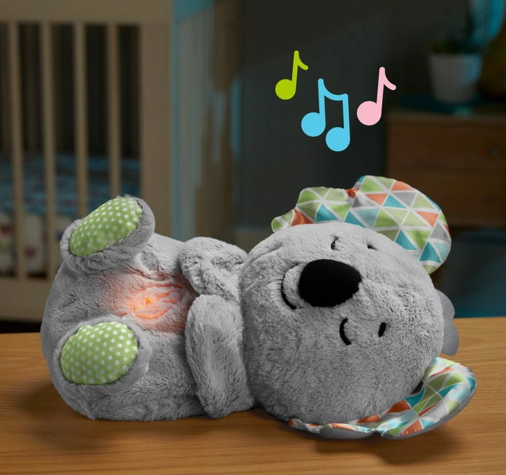 Brzuszek koali delikatnie unosi się i opada, naśladując oddychanie i naturalnie uspokajając dziecko przed snem.