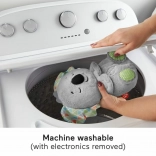 Zabawkę łatwo utrzymać w czystości – po wyjęciu modułu elektronicznego można ją prać w pralce. Miękka powierzchnia i różnorodne struktury materiałów wspierają rozwój sensoryczny i pobudzają naturalną ciekawość dzieci. Idealna do wyciszenia przed snem i spokojnych chwil w ciągu dnia.