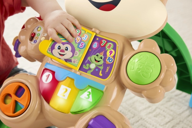 Technologia Smart Stages oferuje kilka poziomów nauki – od prostych słów i dźwięków po alfabet (ABC), liczby (123), kolory i kształty, w tym podstawowe słówka po angielsku. Dzieci ćwiczą logiczne myślenie i poznają zasadę przyczyny i skutku poprzez naciskanie przycisków, kręcenie kółkami czy pchanie chodzika.
