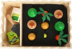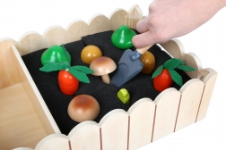 Uwaga, młodzi ogrodnicy! Ten warzywny grządek z drewnianym ogrodzeniem to wszystko, o czym marzą młode serca ogrodników. Oprócz marchwi, grzybów, ziemniaków i brokułów zestaw zawiera także łopatkę, nawóz i nasiona. W grządce zamieszkała też gąsienica! Młodzi ogrodnicy nauczą się, jak sadzić warzywa i jak o nie dbać przed zbiorem. Ta zabawka rozwija małą motorykę i wyobraźnię. Zawiera 13 elementów wyposażenia