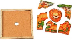 Drewniana układanka lew z edycji Safari to świetny sposób, aby zająć, a jednocześnie rozwijać umiejętności motoryczne najmłodszych dzieci. Puzzle zawierają łącznie 6 elementów oraz solidną podstawę, na którą kładzie się elementy. Zabawka wykonana jest z wysokiej jakości i bezpiecznego drewna, przyjaznego dla dziecięcych rąk.