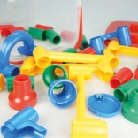 Klocki Cascade przynoszą barwną kaskadę zabawy. Z 29 elementów można tworzyć różnorodne tory kulkowe, po których kulka mknie przez różne poziomy i przeszkody. Praktyczne wiaderko z uchwytem ułatwia przechowywanie i przenoszenie, dzięki czemu dzieci mogą bawić się w domu i w podróży.