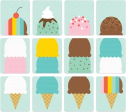 - 52 ilustrowane karty, 4 ciężarówki z lodami