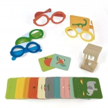 Zabawna gra rodzinna dla dzieci w wieku 4–8 lat, w której za pomocą sprytnych pytań odgadniesz, jaki obrazek masz na czole. Błyskawiczna rozrywka dla 2–4 graczy na ok. 15 minut. W zestawie znajdują się 4 kolorowe okulary z uchwytem na kartę, klepsydra oraz 50 ilustrowanych kart. Wykonano z materiałów z recyklingu i drukowano farbami roślinnymi – bezpieczne i przyjazne dla planety.
